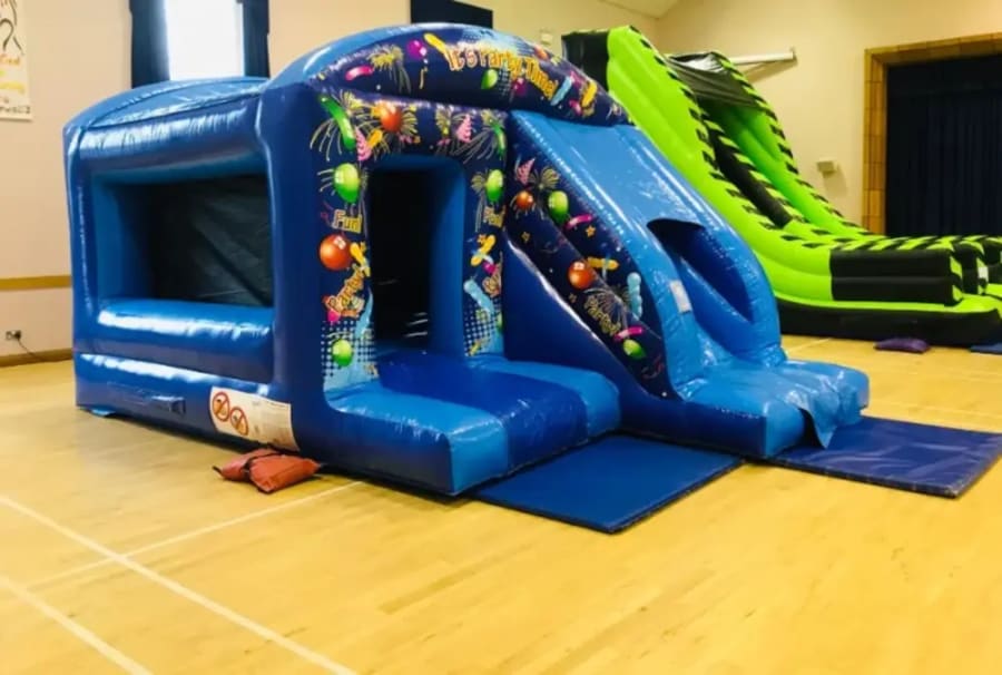 Looking for a bouncy castle for boys and girls ? Look no further; this party time theme inflatable is perfect for both thanks to its neutral design scheme. Whatever event you're hosting, the party bouncy castle with slide combo will fit in with the decor and should go down a hit.