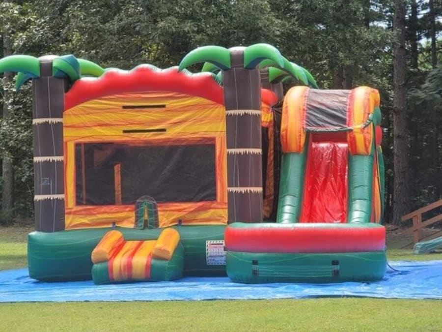 Ready to go to the beach but not ready for the long drive? Although we may not have the sand, you can certainly put your toes in the water with our Palm Springs combination. Too chilly for water you say? This unit can be used dry as well while still bringing the palm trees from a tropical paradise to rustle in the breeze as you play on the bounce house and slide!