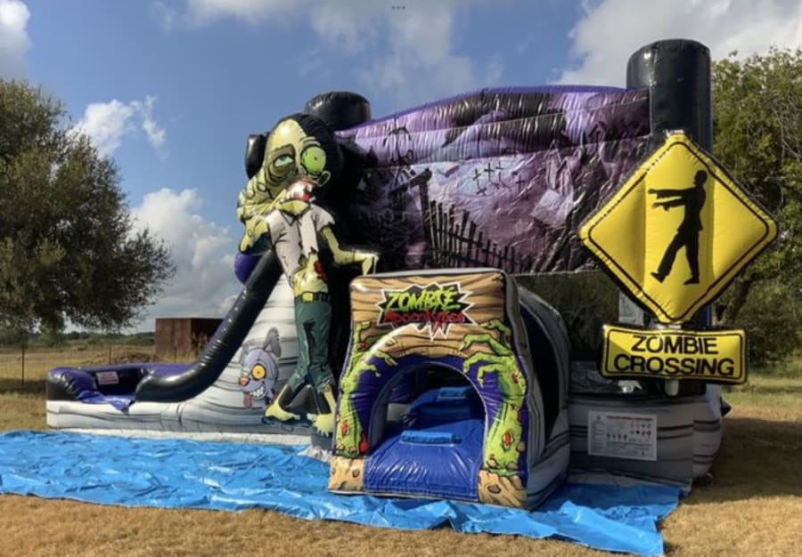 Introducing the ultimate Zombie Apocalypse Bounce House Combo for rent! Perfect for thrill-seekers and adventure lovers, this unique inflatable attraction combines the excitement of a bounce house with the immersive experience of a zombie apocalypse.