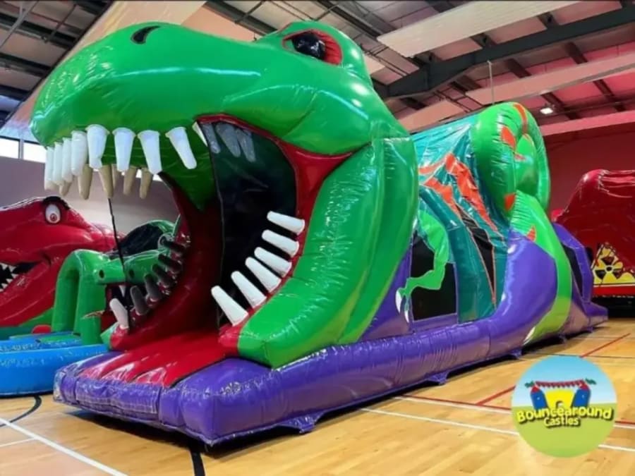 First up is our Dinosaur Assault Course, a thrilling obstacle course that will have your kids running, jumping, and climbing their way through a prehistoric world filled with obstacles and challenges. With vibrant colours and larger-than-life inflatable dinosaurs, this assault course is sure to capture the imagination of kids of all ages. And with its bouncy construction, it can handle even the most energetic of young adventurers.