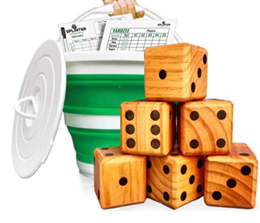 The set includes five oversized wooden dice, a durable scorecard, and a handy carrying case for easy transportation. Each die measures 3.5 inches, making them easy to roll and see from a distance.