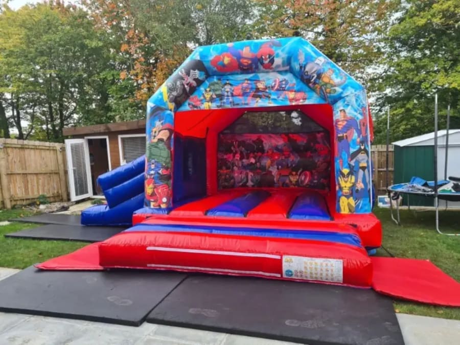 superhero open bouncy castle with slide
