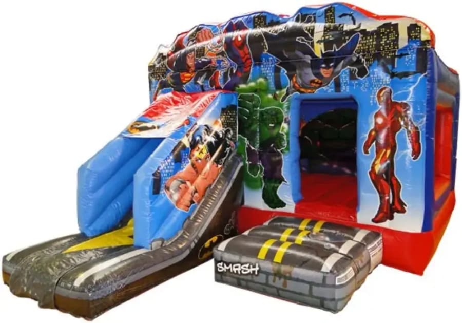 superhero bouncy castle with slide