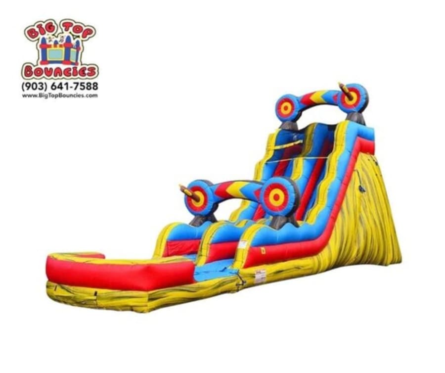 It's impossible to miss the mark with our Bullseye water slide! Bright colors, 3-D arrows, and a large pool truly make this inflatable the talk of the town! Bullseye can make any event a hit!