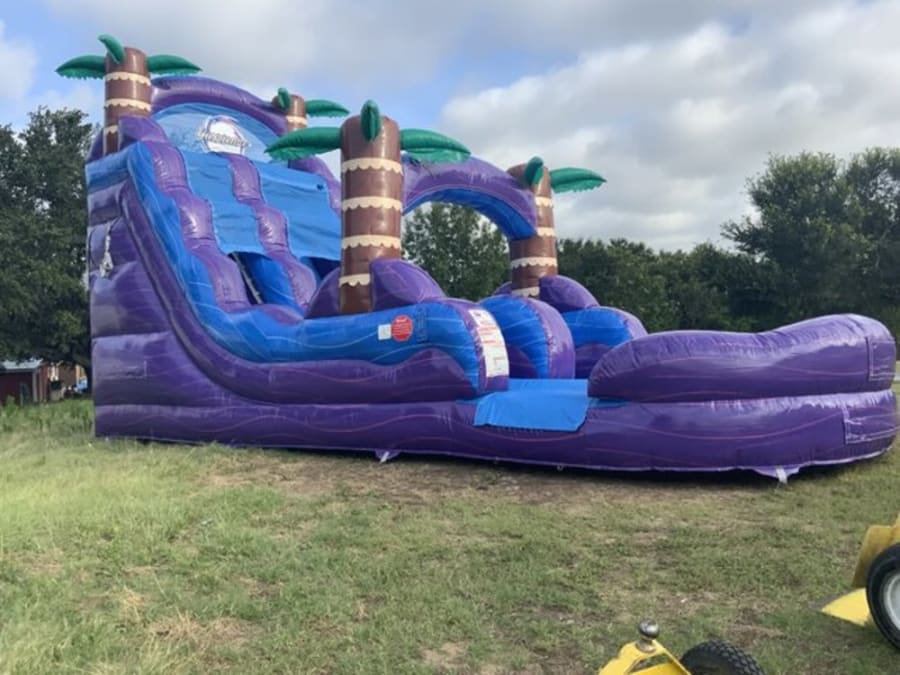 Introducing the Purple Hurricane 18ft Waterslide, the ultimate addition to any summer event or party! This impressive inflatable waterslide stands 18 feet tall and features a vibrant design that will transport your guests to a sun-soaked paradise. Perfect for both kids and adults, this waterslide guarantees hours of exhilarating fun and excitement.
